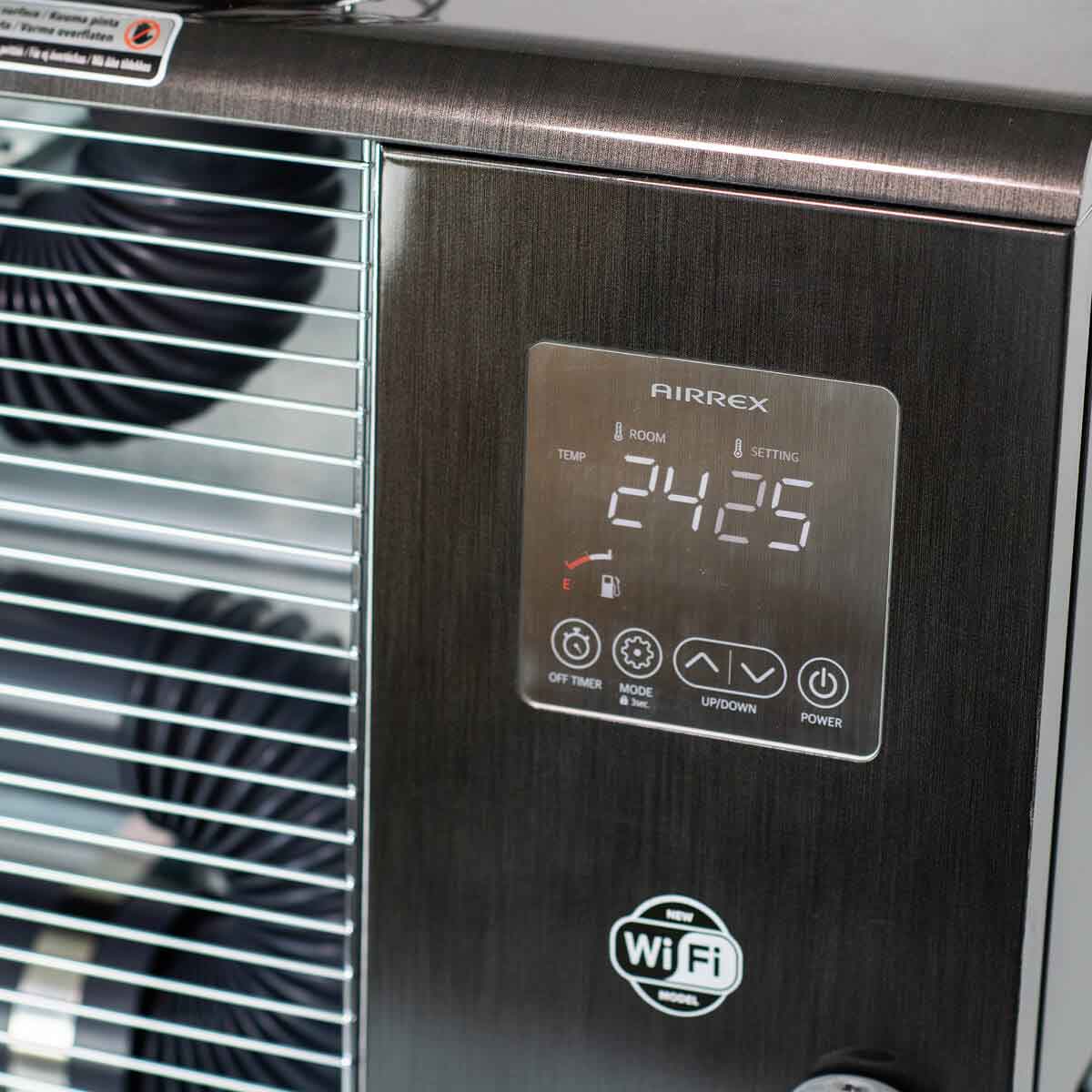 Airrex AH-300i är en professionell infravärmare som kombinerar hög effektivitet med enkel användning. Den värmer direkt objekt och personer utan att värma upp luften, vilket sparar energi och gör upplevelsen behaglig. Med Wi-Fi/4G-styrning och mobilapp kan enheten kontrolleras på distans. Automatisk termostat och timerfunktion gör den enkel att använda, medan flera säkerhetssystem garanterar trygg drift.