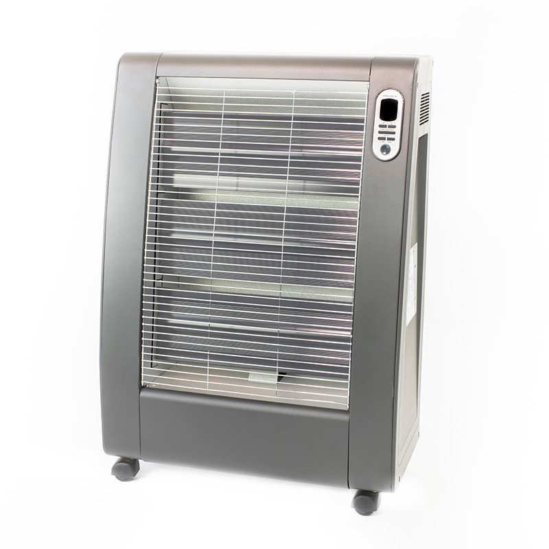 Denna infravärmare har en unik teknologi med en keramiskt belagd värmebärare och en halogenlampa som ger jämn värme spridd åt alla håll. Den har även en inbyggd fläkt för att öka värmeeffekten. Den är portabel med hjul och kräver ingen fast installation. Dessutom har den automatisk termostatstyrning, timer, överhettningsskydd, lutningsdetektor och skyddsjordning. En enkel kontrollpanel med LED-skärm och fjärrkontroll gör den enkel att använda.