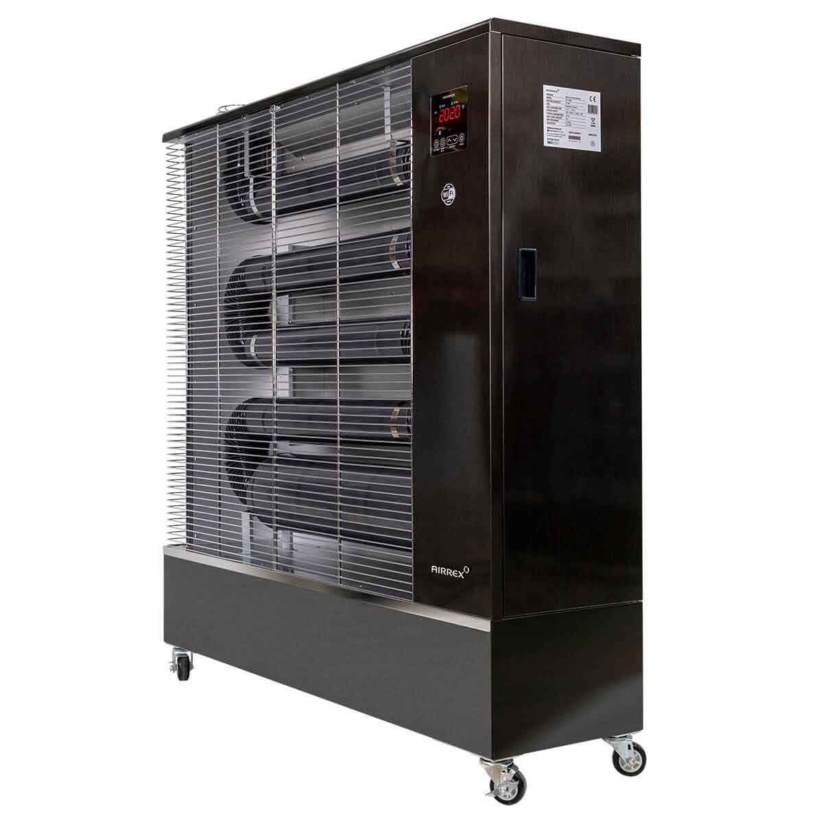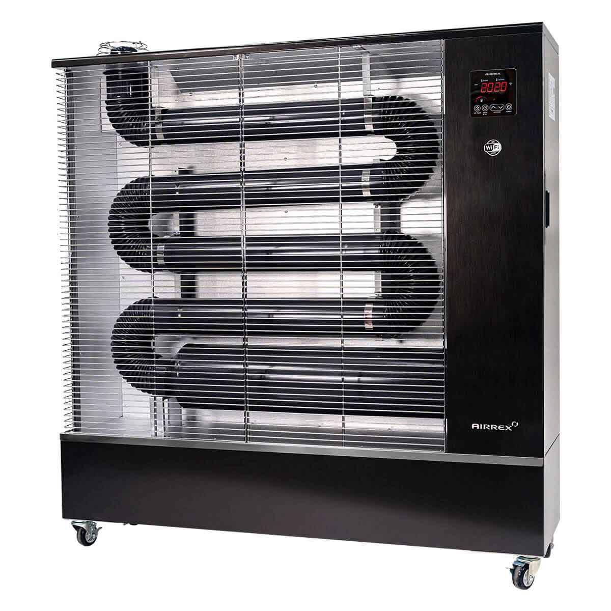 Airrex AH-800i är utvecklad för stora utrymmen som verkstäder, hallar, tält och växthus. Den använder infraröd värme och är fläktfri – vilket innebär effektiv värme utan att förorena luften.