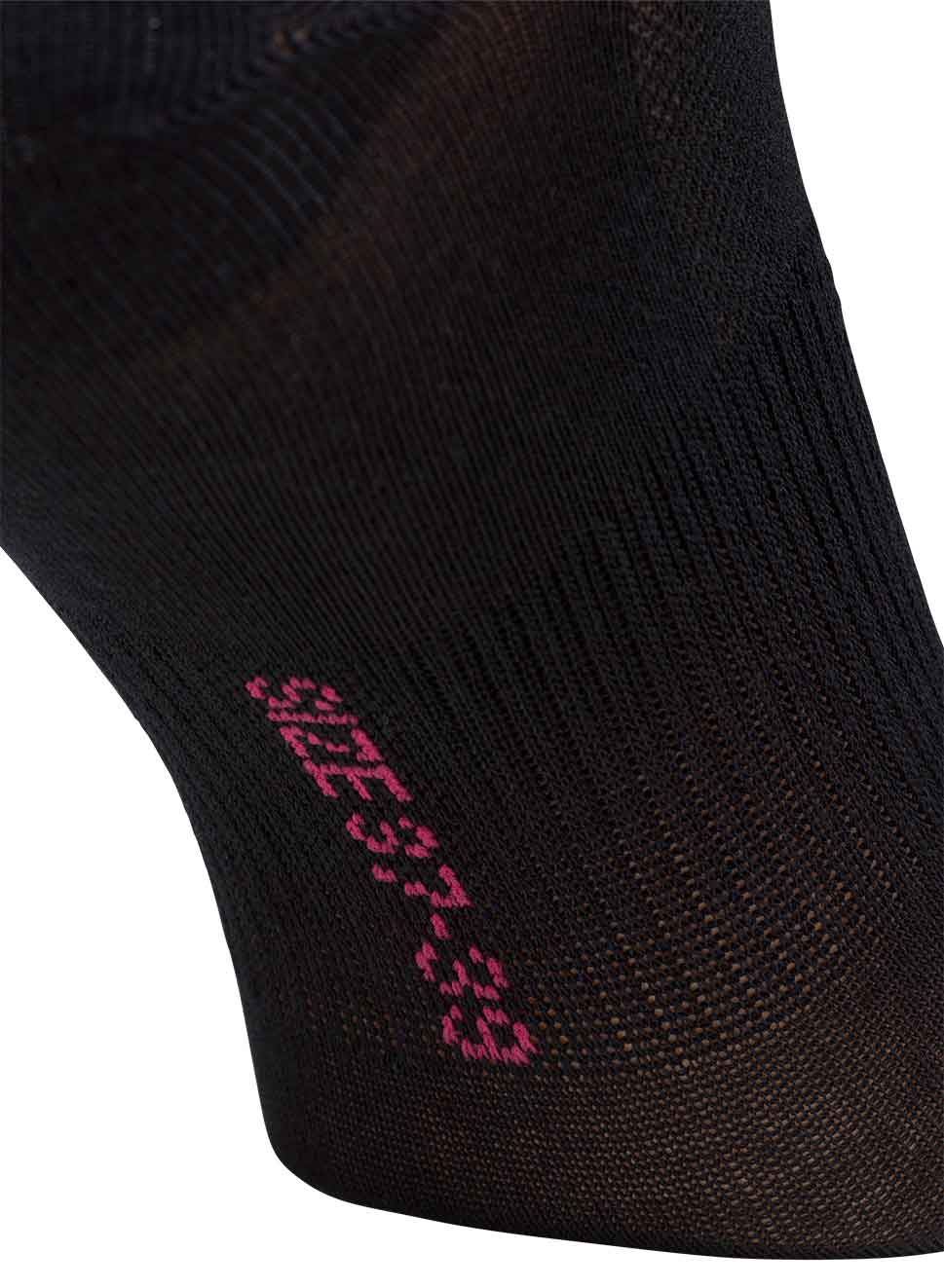 För ökad hållbarhet är både häl och tå förstärkta med återvunnen polyamid, vilket gör strumpan mer slitstark och motståndskraftig mot nötning. Det elastiska fotvalvet ger en säker och bekväm passform som sitter på plats hela dagen. Strumpan är tvättbar i 40°C och har färgkodad storleksmärkning undertill för enkel identifiering.