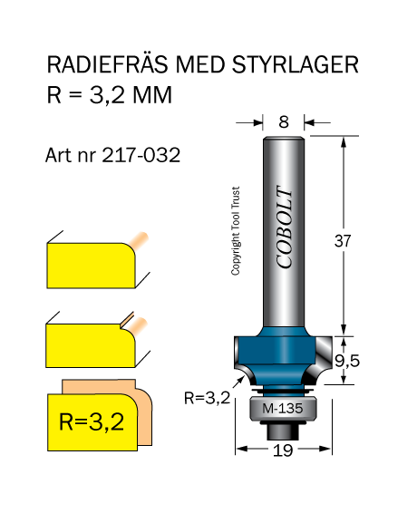 Avrundningsfräs R=3.2 D=19 L=9