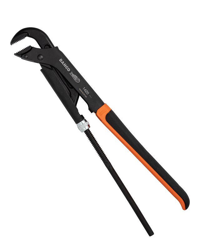 Ytterskänkeln av stålplåt med termoplast/polypropen överdrag som ger ett ergonomiskt utformat ”varmt” grepp. Seghärdad innerskänkel med lägesstopp för inställningsmuttern. Progressiv tandform för bästa rörgrepp. Smala käftar ger perfekt åtkomlighet även i trånga utrymmen.