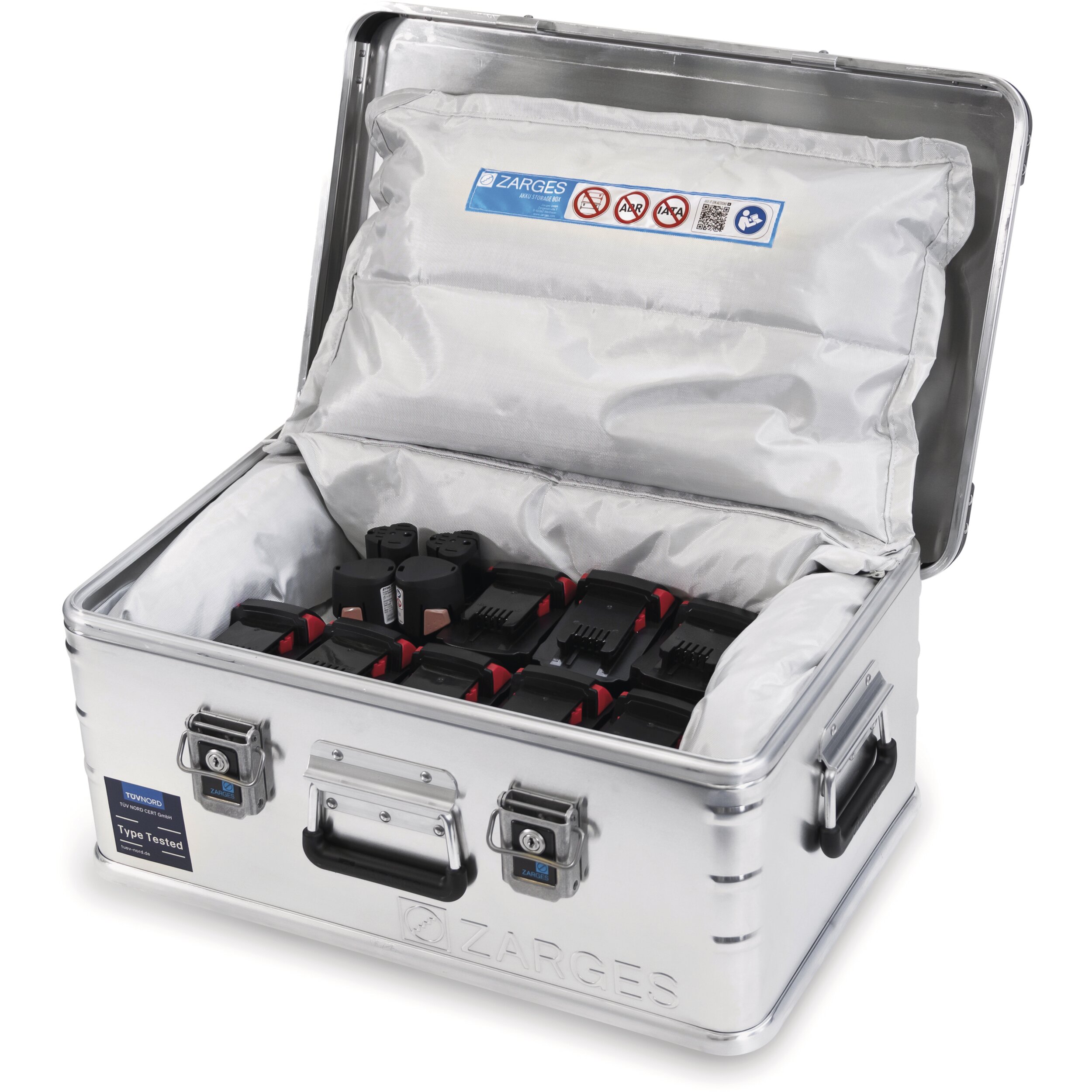 Med en batteriförvaringslåda från ZARGES säkerställs maximal säkerhet vid förvaring av batterier. Lådan är särskilt framtagen för att minimera brandrisker och har genomgått omfattande explosions- och realbrandtester enligt specifikationer från TÜV NORD.