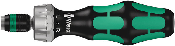 Användning: För bits med 1/4″ sexkantsfattning enligt DIN ISO 1173-C 6,3 och E 6,3 och Wera-fäste serie 1 och 4 Utförande: Spärr, tätstegad för kort returvinkel, omkopplingsring (höger, fast, vänster), maximalt moment upp till 50 Nm, 1/4″ insexhållare med Rapidaptor-teknik med rapid-in-, rapid-out-, rapid-spin-, chuck-all- och single-hand-funktion för blixtsnabbt bitsbyte, magnetisk Grepp: Kraftform med rullstopp, flerkomponent
