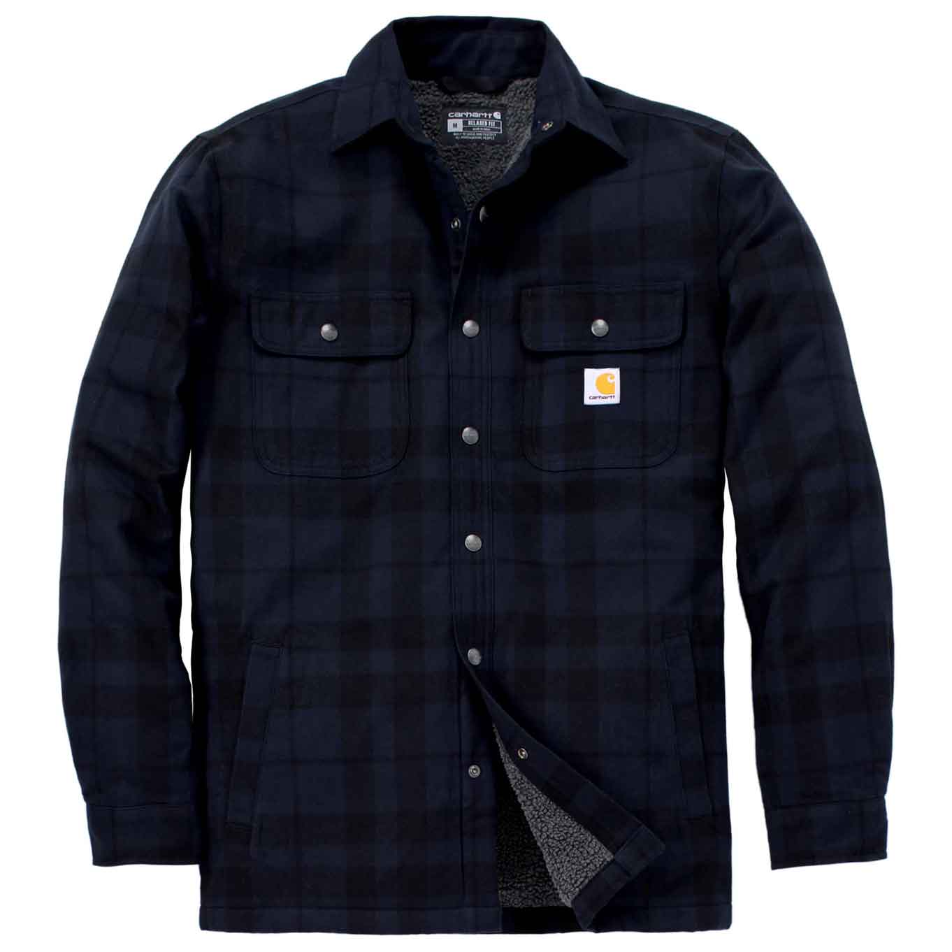 Robust skjortjacka från Carhartt i borstad bomullsflanell med varmt sherpa-foder. Perfekt för arbete eller fritid under kyligare dagar. Relaxed fit för rörelsefrihet, slitstark konstruktion och tidlös design.
