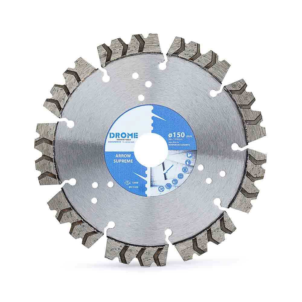 ARROW150 diamantklinga är framtagen för professionella användare som kräver snabb och kontrollerad kapning i betong och murverk. Den pilformade segmentdesignen gör att klingan både kyler sig själv effektivt och transporterar bort damm och material när du kapar, vilket ger maximal prestanda och en ren snittlinje.