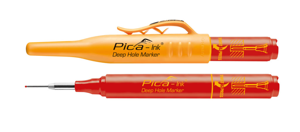 Pica Ink Deep-Hole Marker röd – färgad markör med teleskopspets för märkning i djupa borrhål och på svåråtkomliga ytor, med stark kontrastfärg och hållbart bläck.