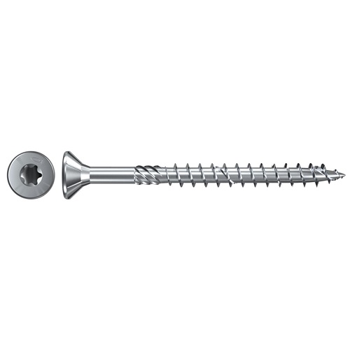 Träskruv Power-Fast II i elförzinkat stål, korrosivitetsklass C1 och med försänkt huvud. ETA-godkänd.