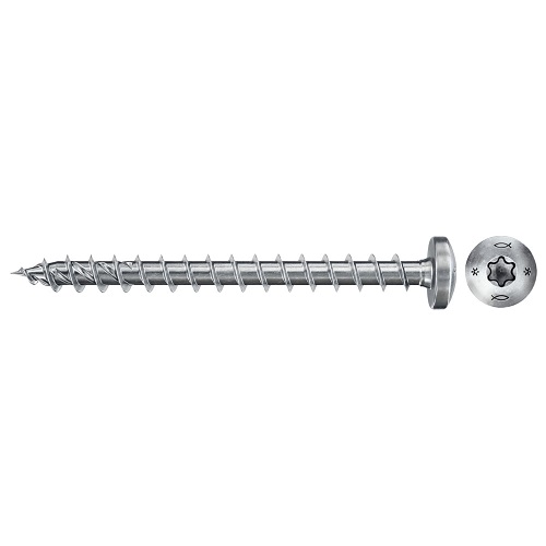 Träskruv Power-Fast II i elförzinkat utförande med kullerhuvud. ETA-godkänd och pluggkompatibel skruv.