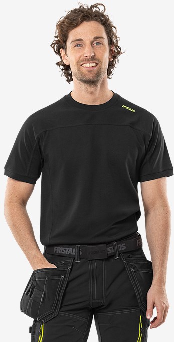 En lätt och snabbtorkande funktions-t-shirt från Fristads tillverkad av 100 % återvunnen polyester. Designad för hög komfort och effektiv fukttransport vid arbete i varma miljöer. Kontrastpaneler och neongula detaljer ger extra synlighet och en sportig, professionell look.