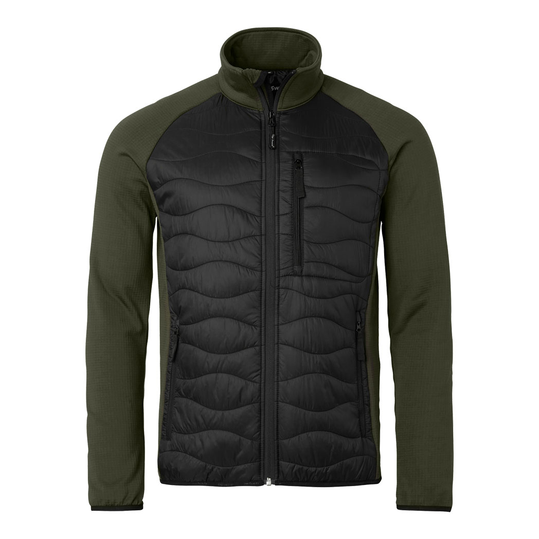 En lätt isolerande jacka Hybrid med quiltat fram- och bakstycke samt stretchpaneler i fleece som ger utmärkt rörelsefrihet. Denna funktionsjacka kan användas som ett mellanlager under en annan jacka eller som ytterjacka. Den är utrustad med en hel dragkedja, vindslå och hakskydd som går hela vägen upp till kragen. Jackan har en bröstficka med dragkedja samt två framfickor med dragkedja. Elastiska ärmslut och nederkant ger en bekväm passform.