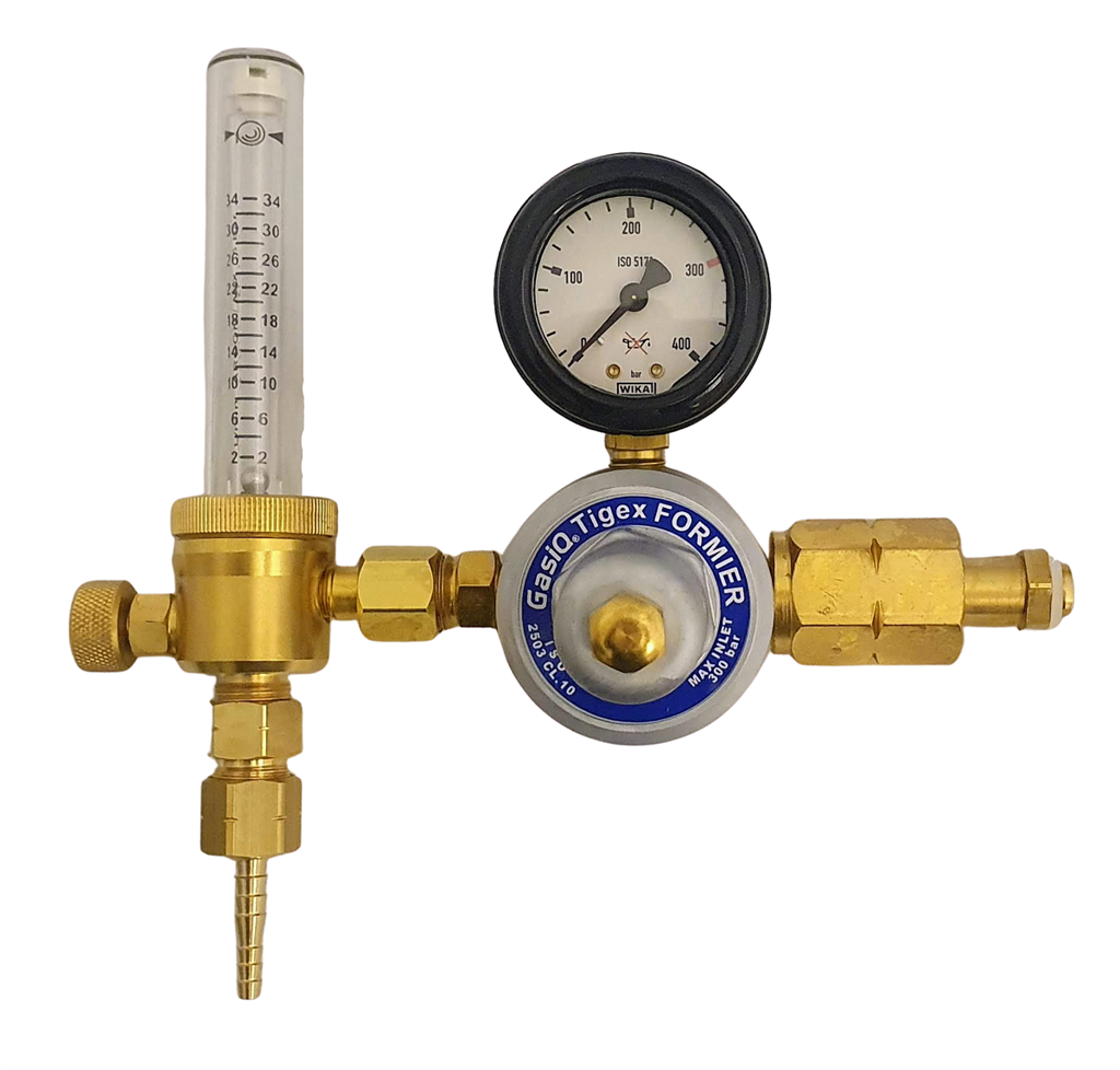 Tigex reduceringsventil med flödesmätarrör är avsedd för skyddsgassvetsning och rotgasskydd där noggrann avläsning av gasflödet krävs. Ventilen finns med enkelt eller dubbla individuellt justerbara flödesmätarrör och har en inbyggd, förinställd säkerhetsventil. För högsta säkerhet är flödesmätarrören splitterfria. Levereras med slangsockel för slang med 5,0 och 6,3 mm invändig diameter.