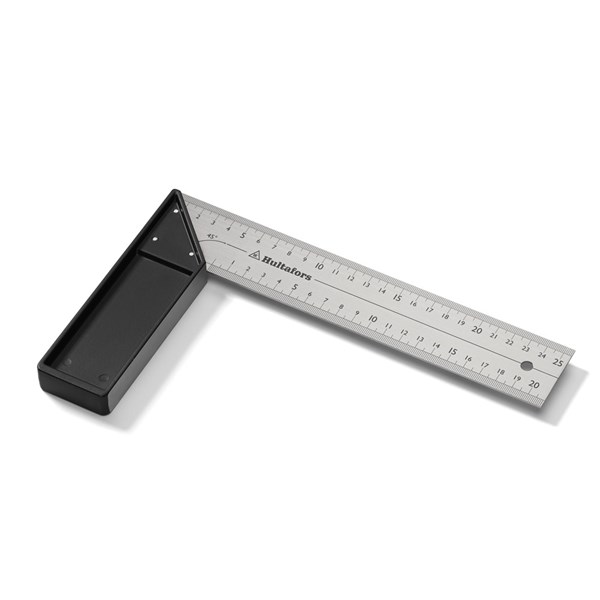 Vinkelhake med anslag av aluminium och millimetergradering i över- och underkant på klingan.
