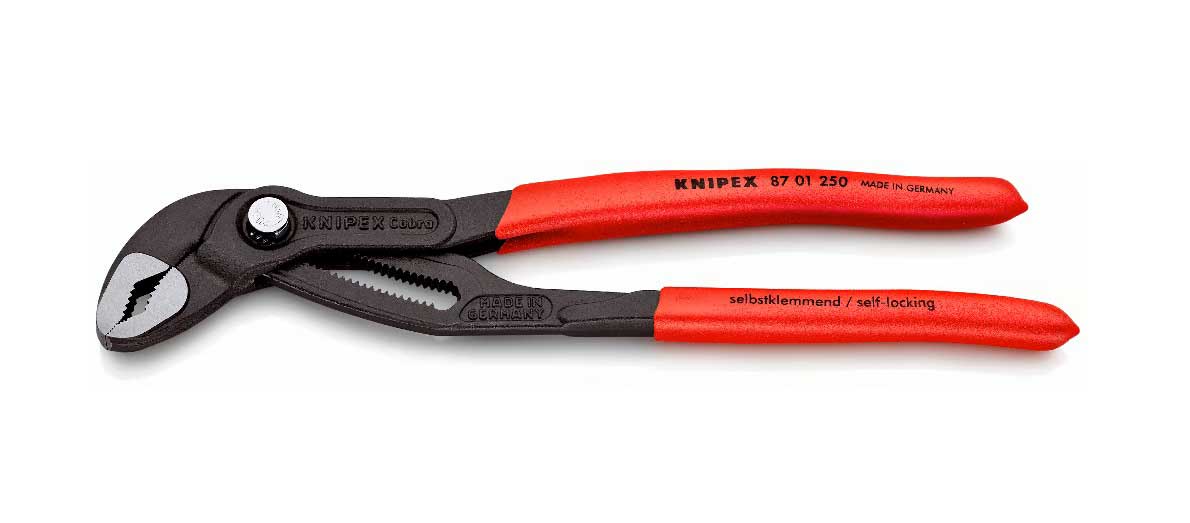 Knipex Cobra® är tillverkad i Tyskland av krom-vanadiumstål och byggd för att hålla – en pålitlig följeslagare i alla verktygslådor.