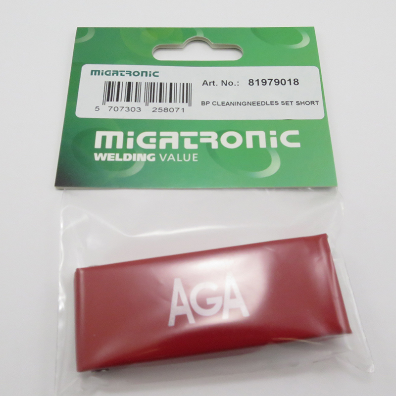 Praktisk rensnålsats från Migatronic för rengöring av svets- och skärmunstycken. Satsen innehåller flera rengöringsnålar i olika dimensioner som effektivt avlägsnar sprut och igensättningar, vilket säkerställer korrekt gasflöde och stabil svetsning.