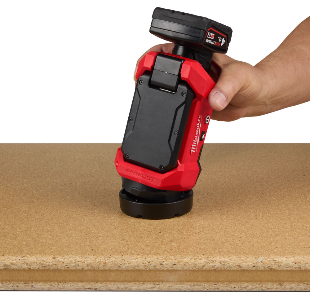 Flexibla monteringsmöjligheter tack vare integrerad krok, magnet och PACKOUT™-fäste.