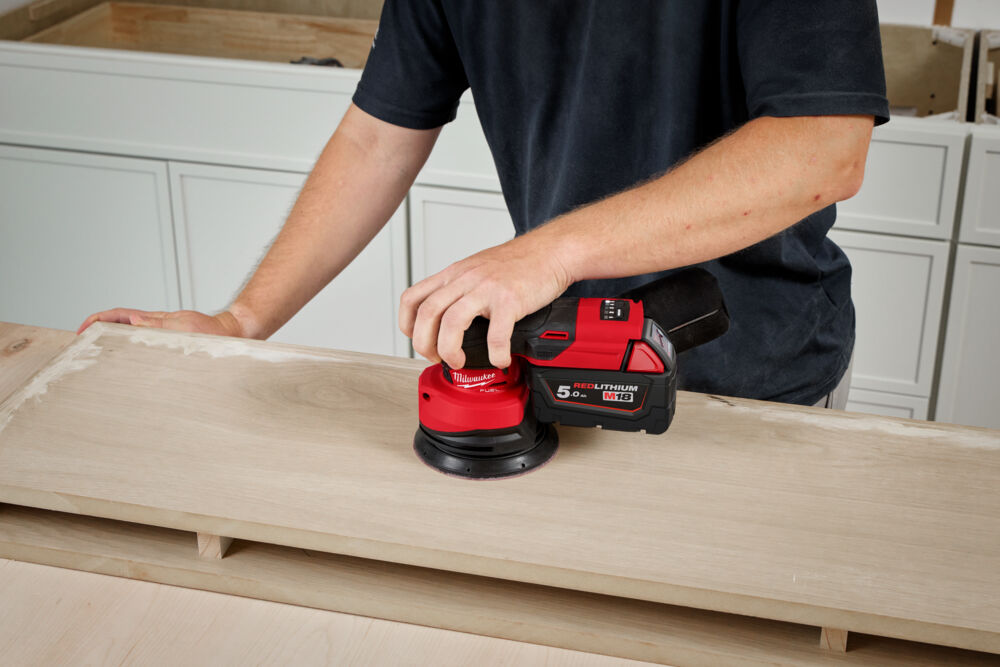 Effektiv slipning: Med en 2,5 mm sliprörelse och upp till 12 000 varv/min ger M18 FUEL™-slipen snabb materialavverkning – upp till 220 gram per laddning med ett M18™ 5,0 Ah-batteri.