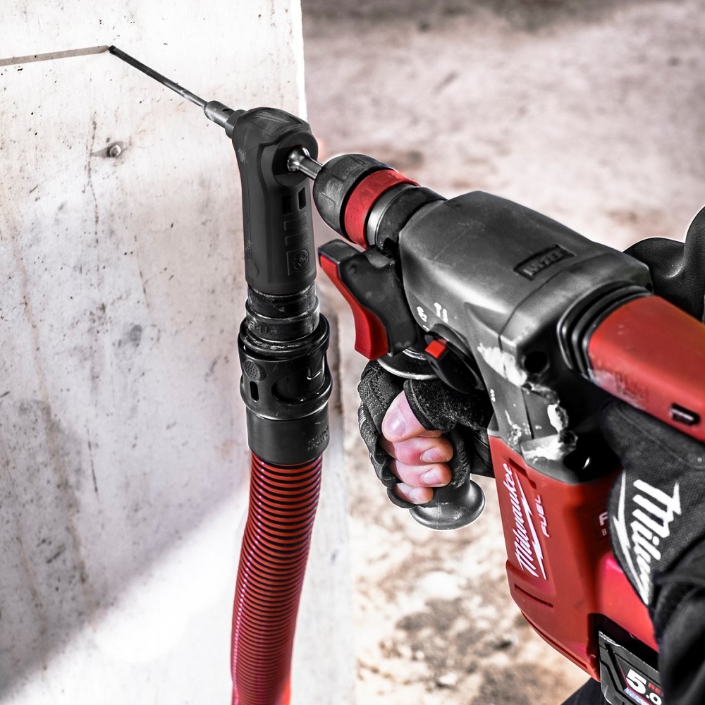 Det effektiva dammutsuget avlägsnar borrdamm direkt vid källan, vilket inte bara ger en renare och säkrare arbetsplats, utan också bidrar till snabbare borrning. Samtidigt hålls borrspetsen sval, vilket minskar slitaget och förlänger borrens livslängd.