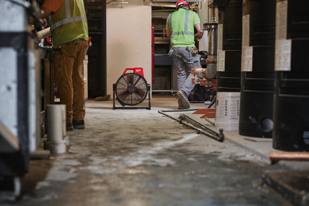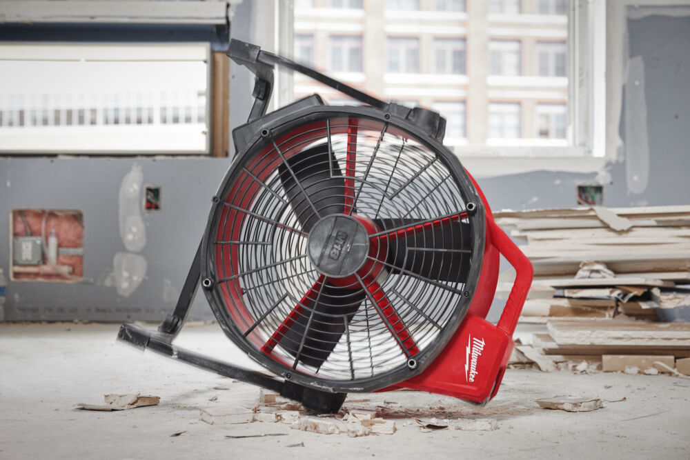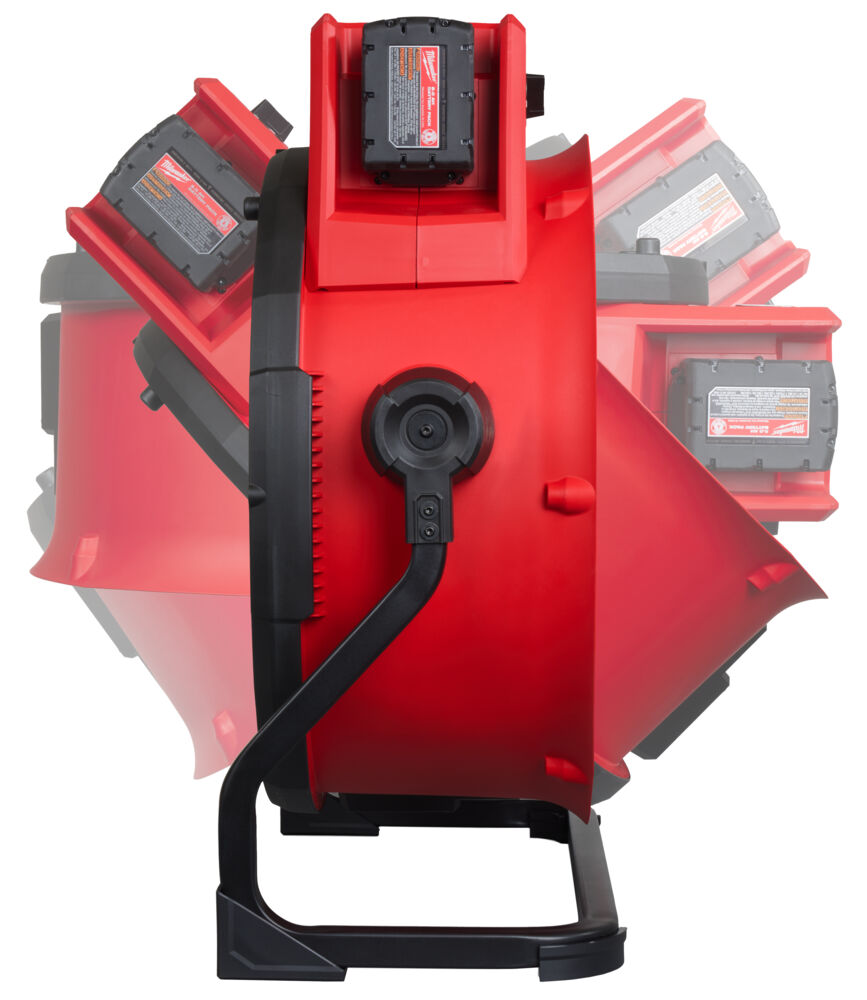 - Lång drifttid med batteri: Med ett M18™ REDLITHIUM™ 5.0 Ah-batteri kan fläkten drivas upp till nio timmar, vilket ger långvarig användning utan behov av frekvent laddning.