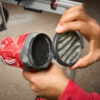 Tre medföljande munstycken – 6 mm, 10 mm och ett uppblåsningsmunstycke – praktiskt förvarade på en magnetisk hållare.