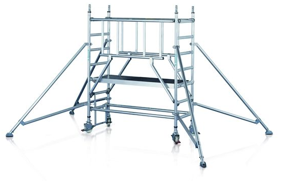 Körbar ställningslösning för säker och snabb uppställning. Plattformshöjd: 2,45m