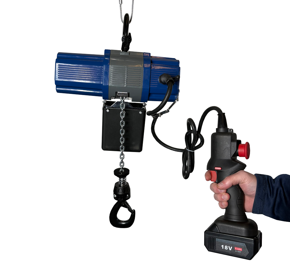 Den borstlösa motorn säkerställer hög driftsäkerhet och lång livslängd, samtidigt som radiostyrningen ger smidig och säker manövrering. Med flera inbyggda säkerhetsfunktioner som överbelastningsskydd, nödstopp och mjukstart får du ett tryggt och kontrollerat lyft i alla lägen.