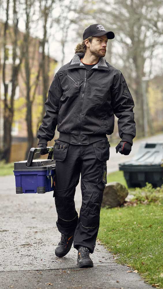 Jobmans fodrade pilotjacka är en slitstark och funktionell vinterjacka i vattenavstötande polyester. Den har ett smidigt quiltat foder för optimal komfort samt en krage med mjukt pilefoder för extra värme. Jackan är utrustad med bröstfickor och ärmficka med blixtlås, framfickor samt en innerficka med särskilt mobilfack. Dessutom finns en praktisk D-ring för ID-kortshållare. Resårmudd i midja och ärmslut säkerställer en bra passform. Finns i svart upp till storlek 5XL.
