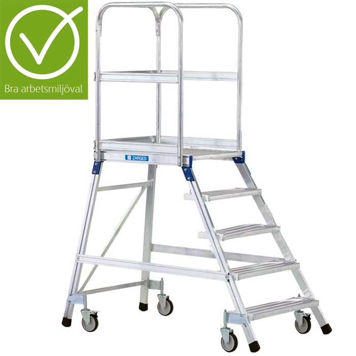 Säker och lätt lösning för flexibelt arbete: bekväm uppstigning, säker arbetsställning tack vare fyra fjädrande hjul och enkel hantering.