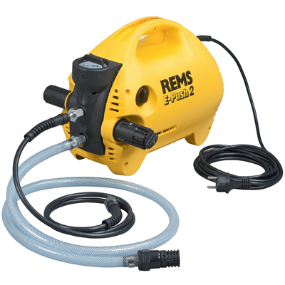 Elektrisk provtryckningspump med manometer för tryck- och täthetskontroll av rörledningssytem och behållare upp till 6Mpa/60bar/870 psi, med inställningsbar tryckbegränsning.