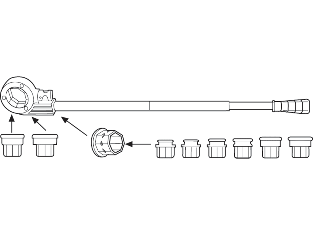 Gängbackar 1-2 tum rör. För gängning med gänghuvud nedan