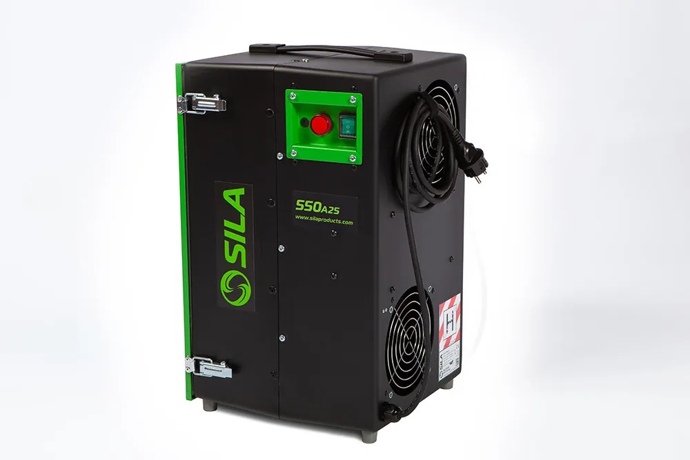 Jämfört med tidigare modeller är SILA 550A25 tystare, tack vare en förbättrad rundad design och två utblås. Detta gör den inte bara effektiv i att rena luften, utan även tystare under drift – perfekt för arbetsmiljöer där ljudnivåer är viktiga.