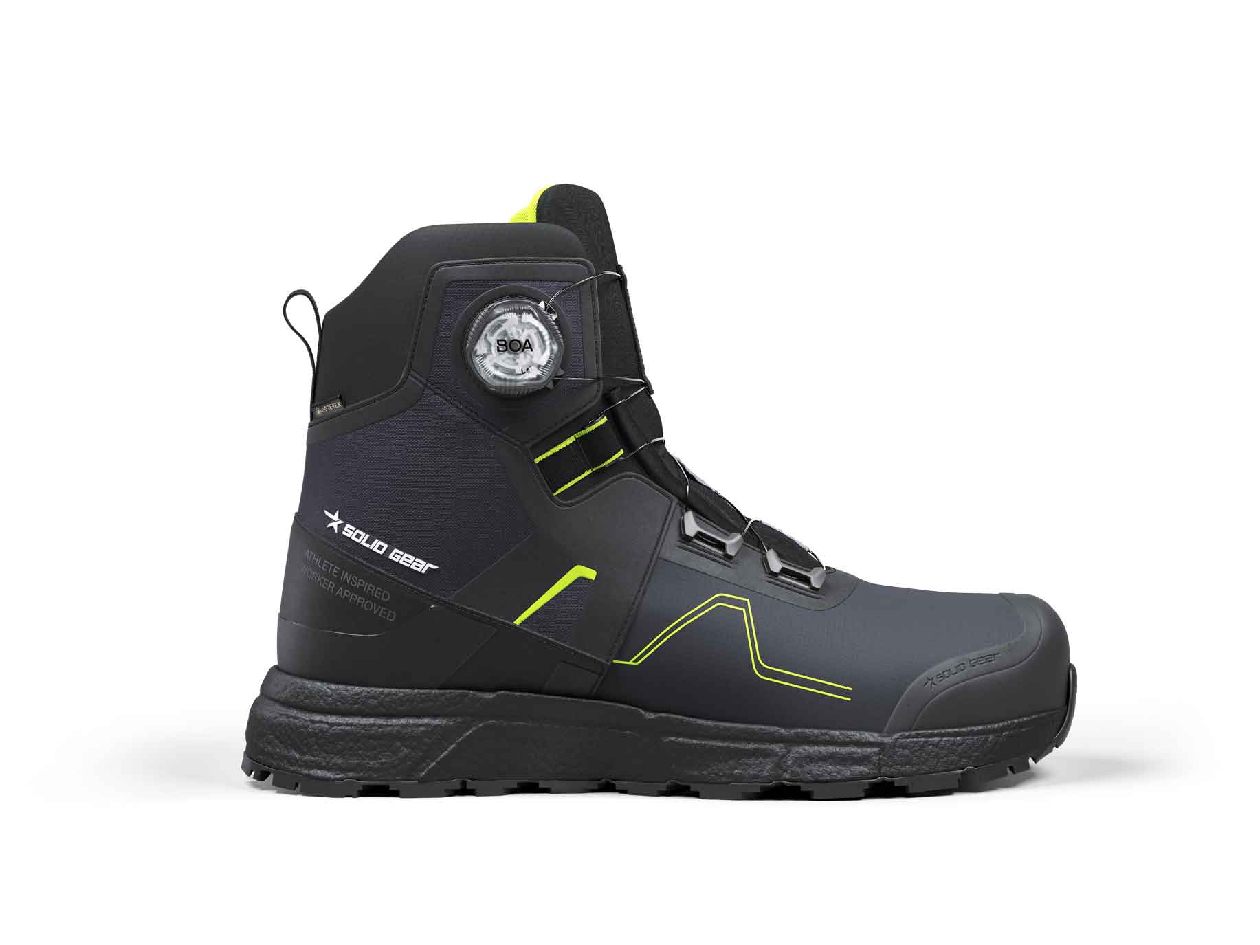 Solid Gear Revolution GTX är utvecklad för yrkesanvändare som kräver maximal komfort utan att kompromissa med säkerheten. Den är utrustad med GORE-TEX®-membran, vilket innebär att skon är helt vattentät samtidigt som den ventilerar effektivt – perfekt för arbete i varierande klimat.