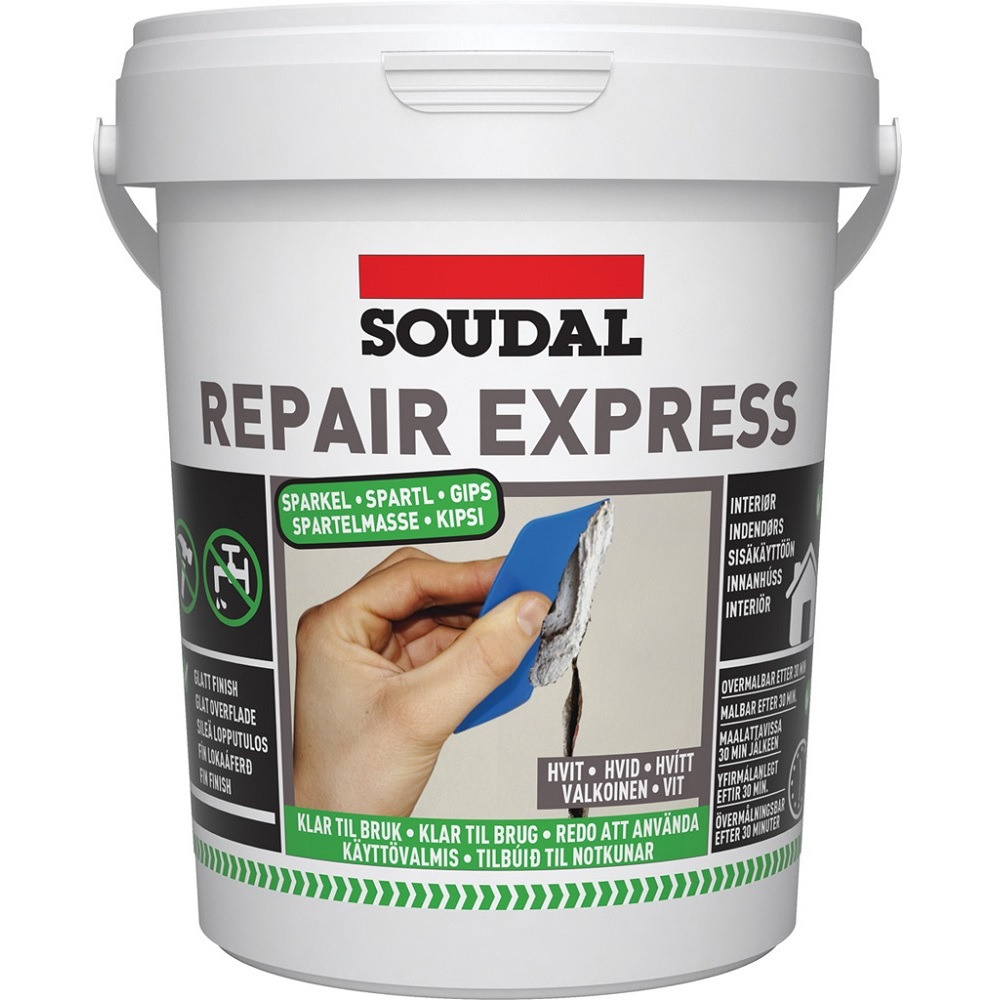 Repair Express Plaster är en högkvalitativ, krympfri fyllningsmassa för snabb och enkel reparation av sprickor, hål och skruvhål i väggar och tak. Produkten härdar snabbt, ger en jämn finish och kan målas redan efter 15 minuter.