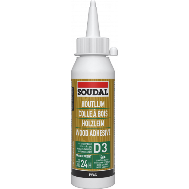 PRO 30D – Trälim D3 är ett färdigt att använda, snabbtorkande lim baserat på PVAc med överlägsen vattenbeständighet (D3). Det är lätt att applicera, har hög vidhäftningshållfasthet, torkar snabbt och blir transparent. Limmet tål höga temperaturer och lämpar sig för både inomhusapplikationer med hög fuktighet och exteriöra applikationer som inte utsätts direkt för väder.