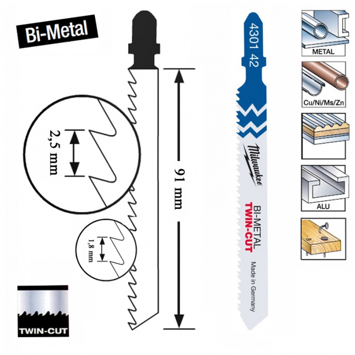 Dessa blad är lämpliga för att såga i många olika material, från mjuk stål, aluminium, trä, trä med spik, plast mm.