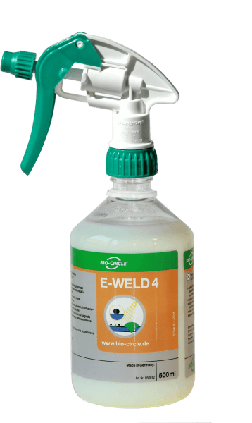 Terosystem E-Weld 4 är en rapsoljebaserad svetsspray som effektivt förhindrar att svetsloppor och stänk fastnar på metallen vid svetsning. Produkten skyddar även munstycken och gaskåpor från slagg och föroreningar. Med en citrusdoft och en s.k. Moseseffekt säkerställer den ett porfritt svetsgods utan att innehålla silikon, mineralolja eller lösningsmedel.