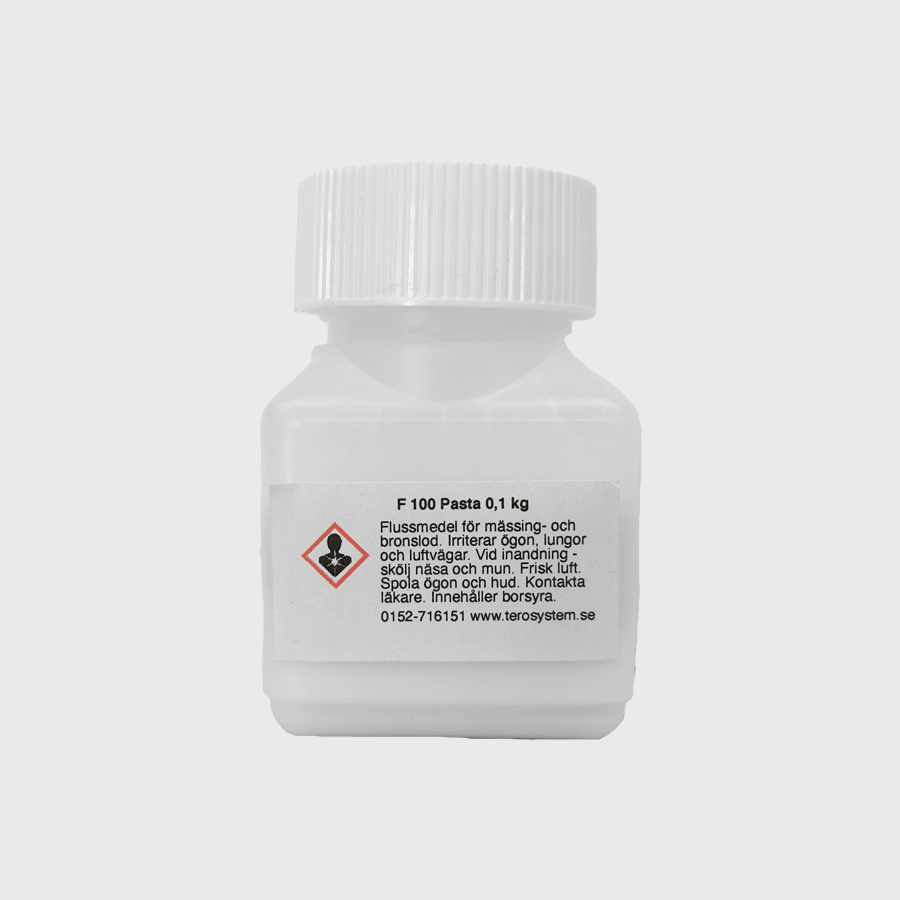 Terosystem F-100 Pasta är ett flussmedel speciellt utvecklat för lödning med mässings- och bronslod. Det hjälper till att förbättra vidhäftning och flöde vid lödning.