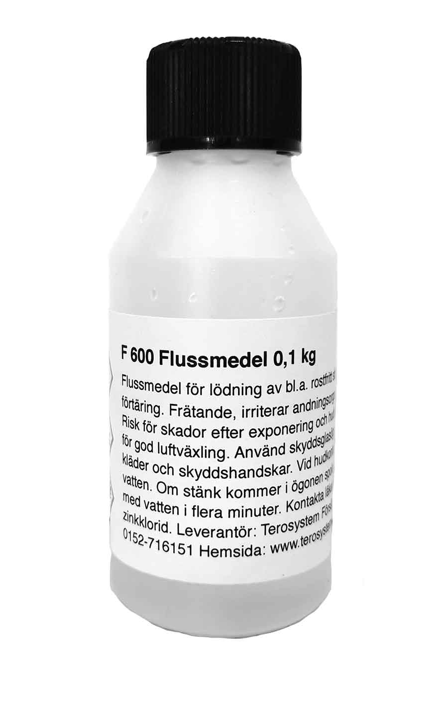 Terosystem Flussmedel F600 är en vätska avsedd för lödning av metaller som stål, koppar, mässing och rostfritt stål med tennlod. Det underlättar lödprocessen genom att avlägsna oxider från metallytorna, vilket förbättrar lodets vidhäftning.
