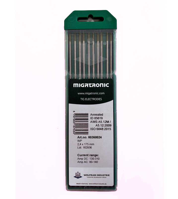 Volframets höga smältpunkt gör elektroden mycket värmetålig och ger lång livslängd även vid krävande svetsarbeten. Den olegerade konstruktionen ger god ljusbågsstabilitet och kontrollerad svetsprocess, vilket gör den lämplig för både professionella svetsare och verkstäder.