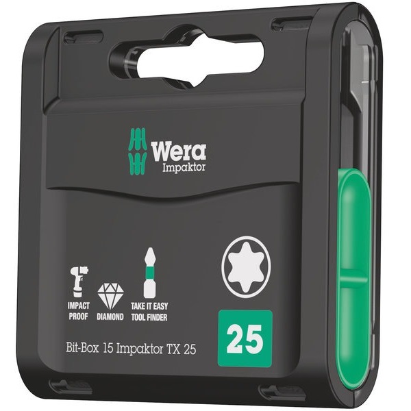 Startsidan / Maskiner & Verktyg / Handverktyg / Dragverktyg / Bits och Bitssatser / WERA Bit-Box Impaktor TX25 15-Pack