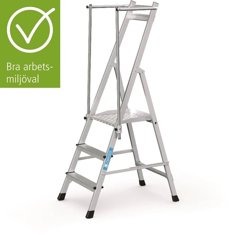En smidig och lätt plattformsstege med fällbara ledstänger och bekväm stor plattform.